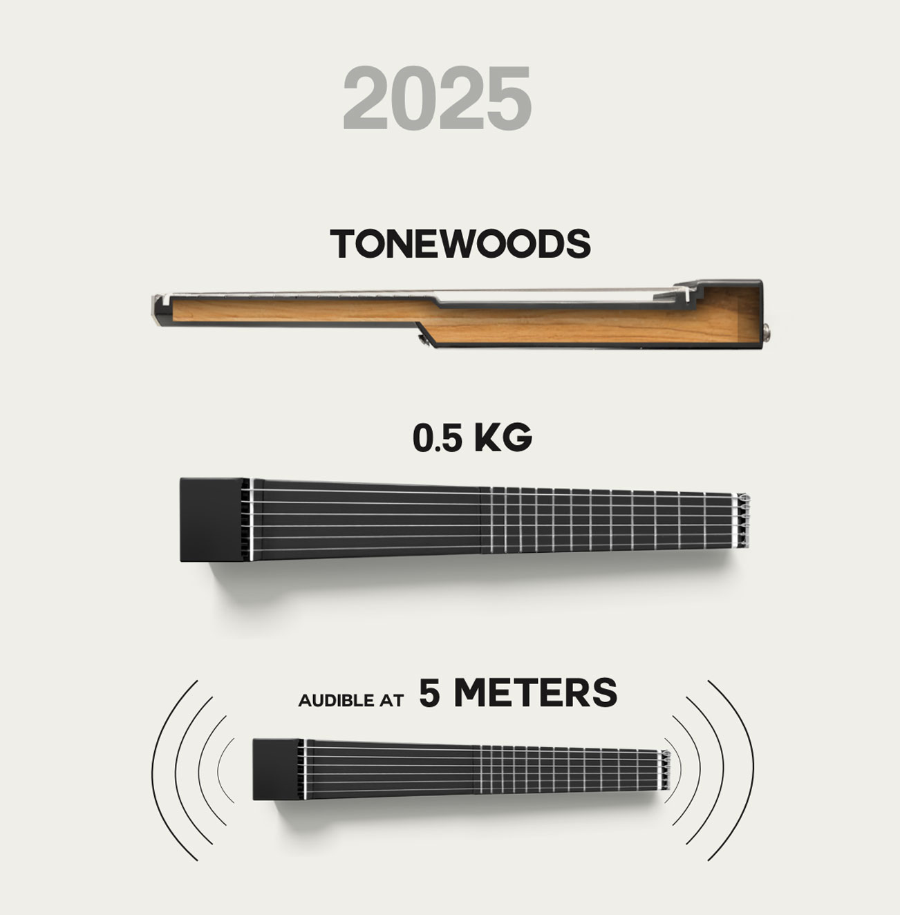 "No body, no problem – the Minicorda is a portable acoustic electric travel guitar with a hollow neck build."